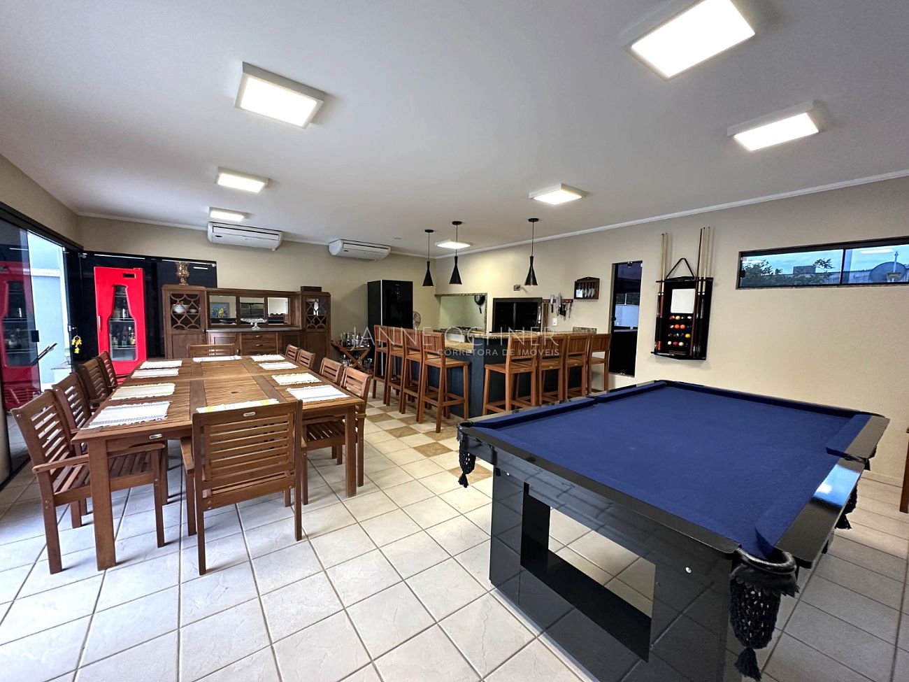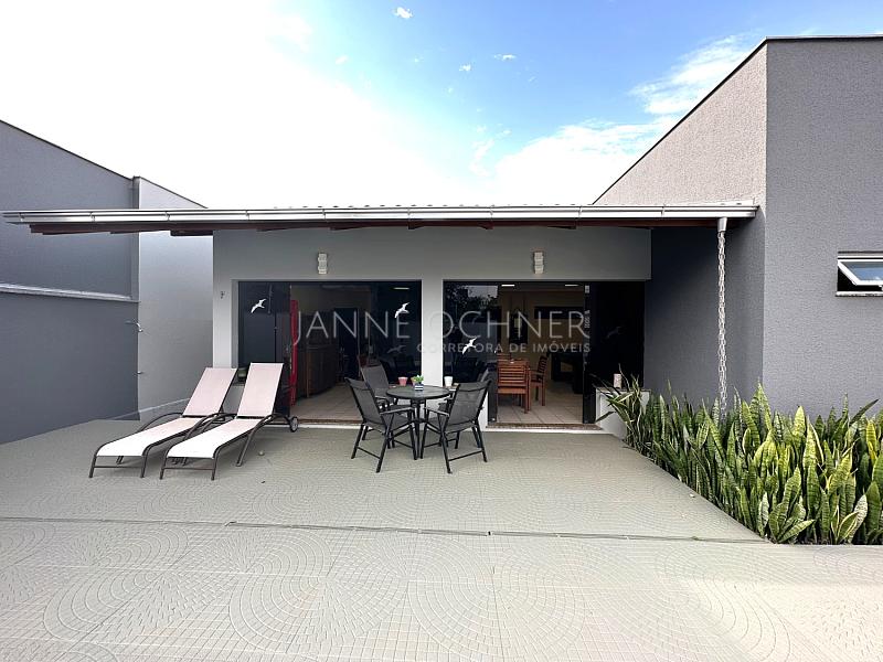 Para os momentos de descontração, a casa oferece um refúgio particular: Uma Área De Festas Mobiliada e Climatizada com 160m², integrada a uma piscina generosa e um jardim planejado, prático, garantindo total privacidade e bem-estar para sua família.
